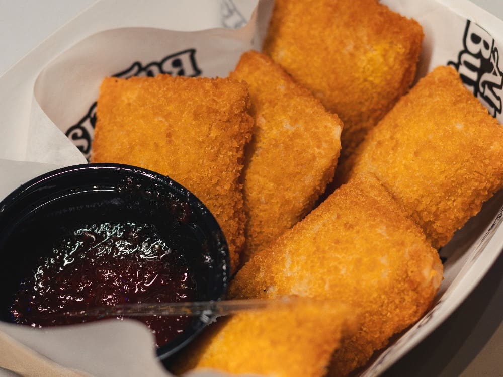 Porção com 8 unidades de queijo gouda empanado. Super cremoso por dentro e crocante por fora. Acompanha nossa geleia de pimenta.